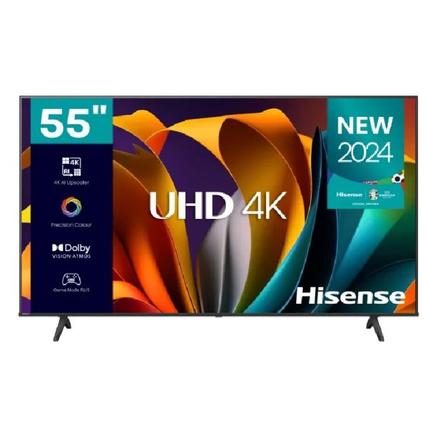Enjoy vibrant visuals and smart entertainment with the Hisense 55A6N. This 55″ UHD 4K Smart TV brings your favorite movies, games, and shows to life with crisp detail, immersive audio, and smooth performance.