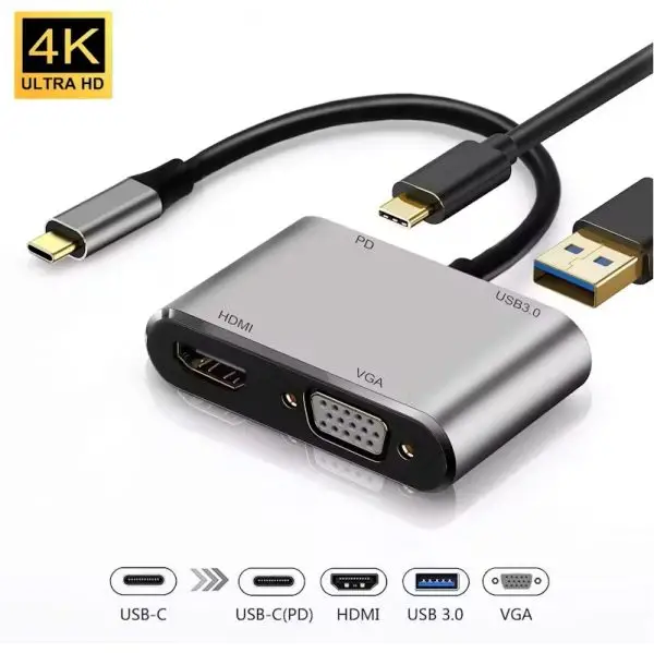 4-in-1 Functionality – Includes HDMI (4K), VGA, USB 3.0, and Type-C input